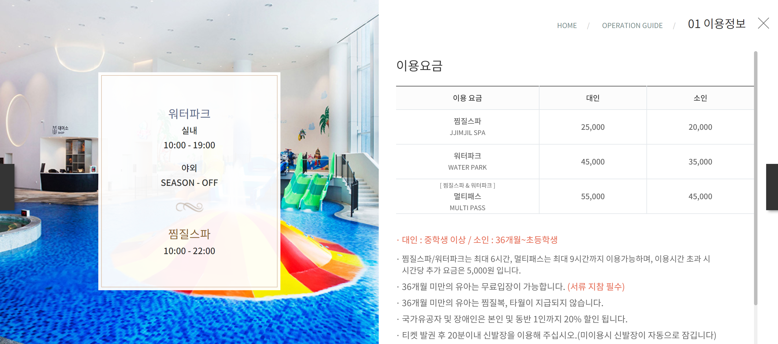 워터파크 요금 및 이용 시간